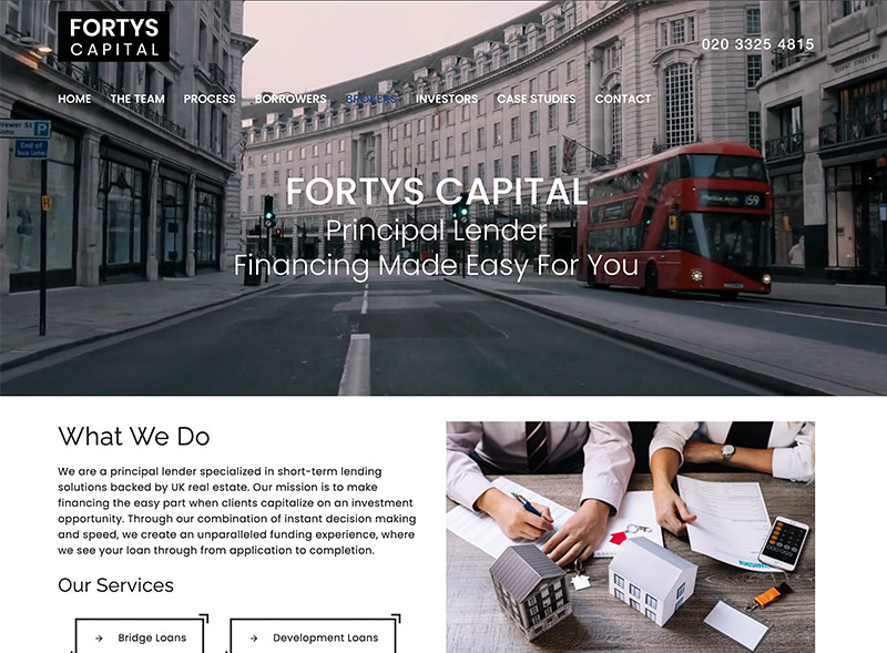Fortys Capital needed a premium, trust-led website to position the firm as a London-based principal lender and clearly explain its short-term property finance offering. As a specialist lender providing bridging finance and development loans backed by UK real estate, the website needed to communicate speed, criteria and process—while generating high-quality enquiries from borrowers, brokers and investors.